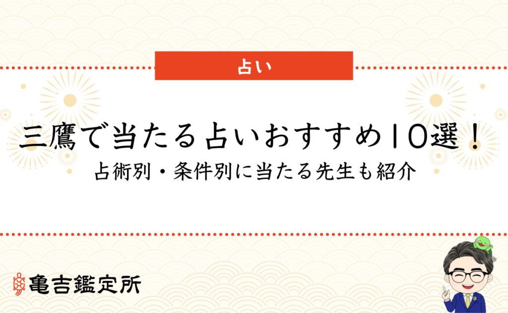 自然豊かで住みやすい街として人気の三鷹市には、対面鑑定で占いが楽しめるお店がたくさんあります。 当たると絶賛されている占い師も多く、占いで恋愛相談や人生相談に乗ってくれる先生がいることでも人気のエリアです。 本記事では、そんな三鷹で当たる... -