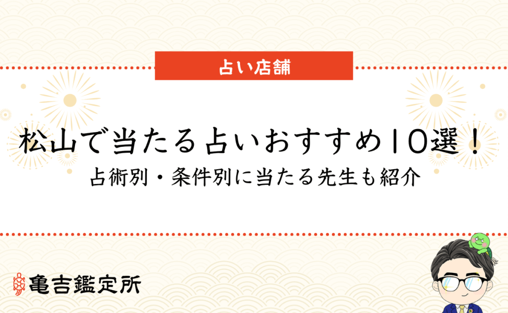 松山は愛媛県の県庁所在地であり、商業施設や文化施設が多いことで知られています。 そんな四国でも特に活気あるエリアの松山には、占いができるお店がたくさんあるのをご存知ですか? 本記事では、松山で当たる占いおすすめ10選を紹介します。 それぞれの... -